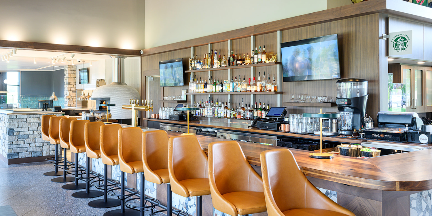 The Grounds at St. Croix National is a newly renovated restaurant and bar with 4 HD Golf simulators included in the dinning room. The patio has 3 tiers of seating including the dramatic 19th hole tee box.